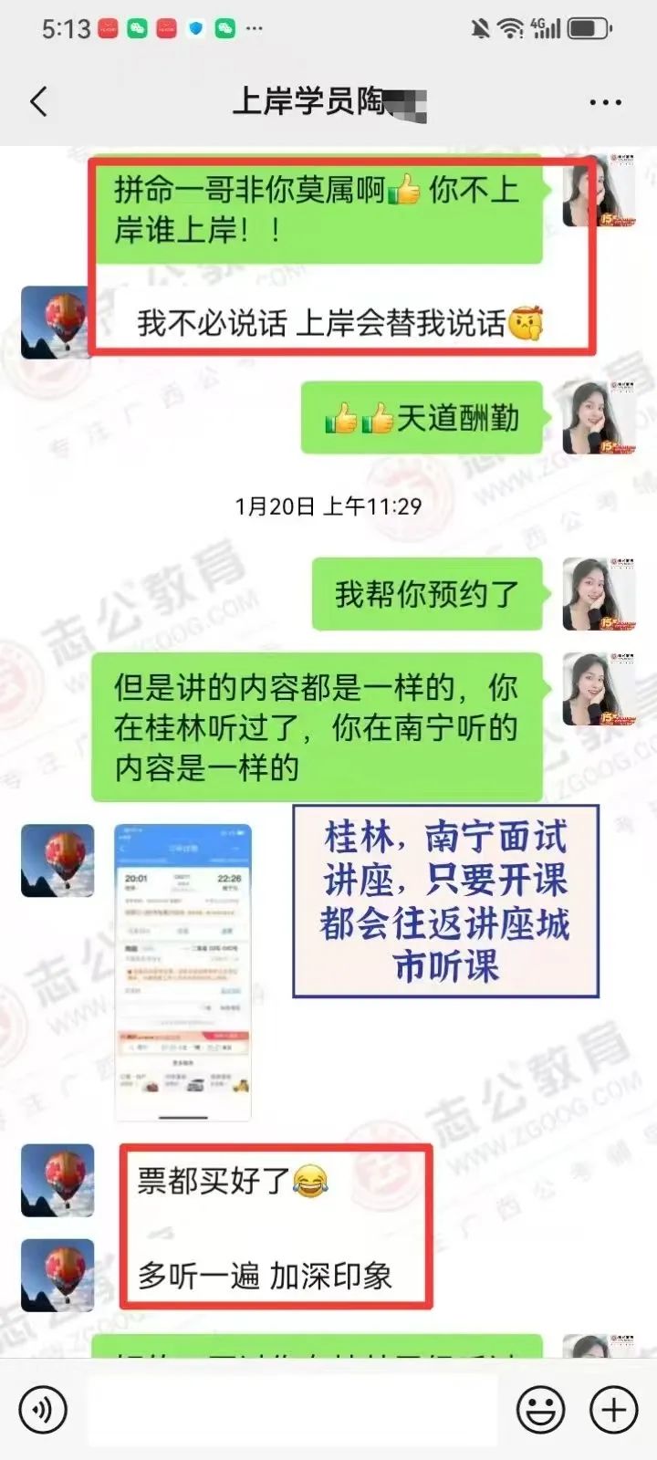 2023年,臨近研究生畢業(yè)時,一次偶然的機會,他得知同學(xué)的愛人也就是我,在我們志公教育任教。加我微信后跟我了解到我們志公有一個非常適合他的畢業(yè)成公課程,也了解到我們是一家優(yōu)秀的公考培訓(xùn)機構(gòu)后,8月他毫不猶豫地報了我們的畢業(yè)成功班。從那以后,他一邊上學(xué)一邊培訓(xùn),常常學(xué)習(xí)到深夜。2024年國考,他進面了,聯(lián)系了我升級面試班,但未能成功上岸。不過他沒有絲毫氣餒,迅速調(diào)整心態(tài),繼續(xù)征戰(zhàn)農(nóng)信社和選調(diào)生。
