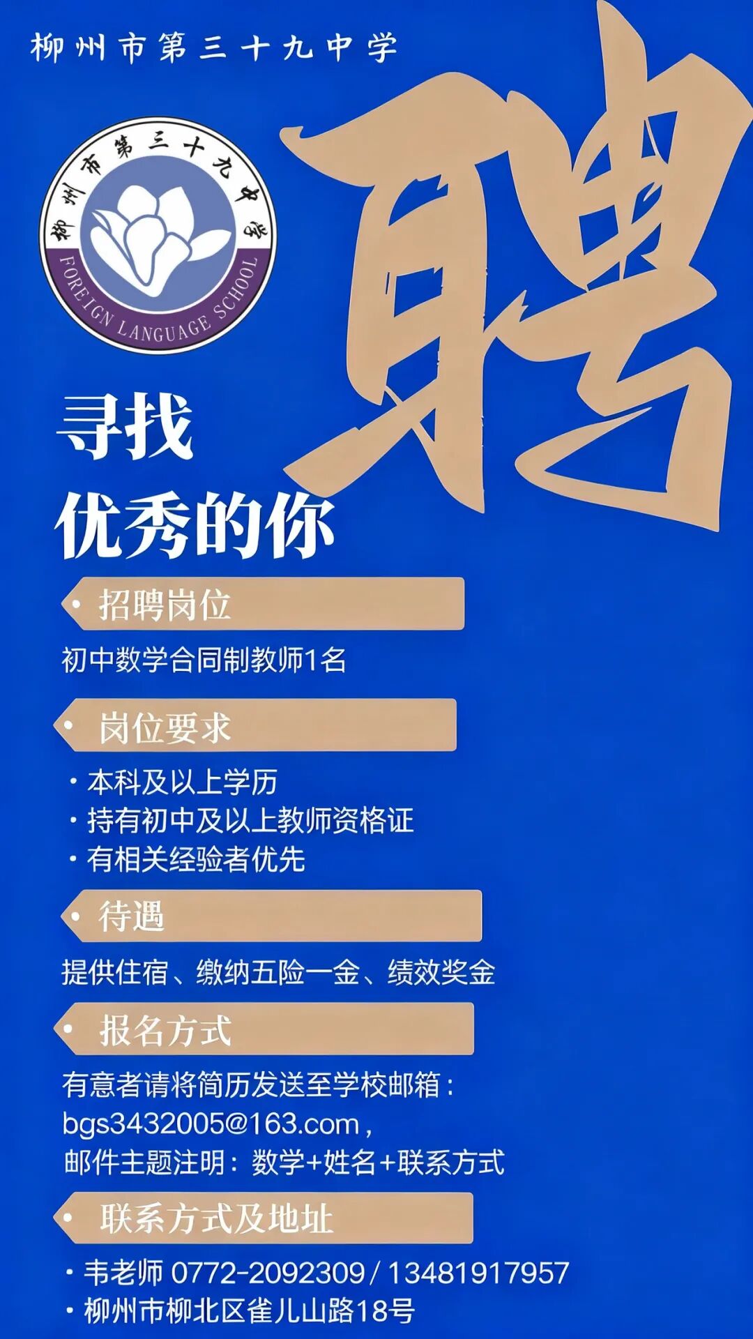 2025年柳州市第三十九中學(xué)招聘初中數學(xué)合同制教師1名