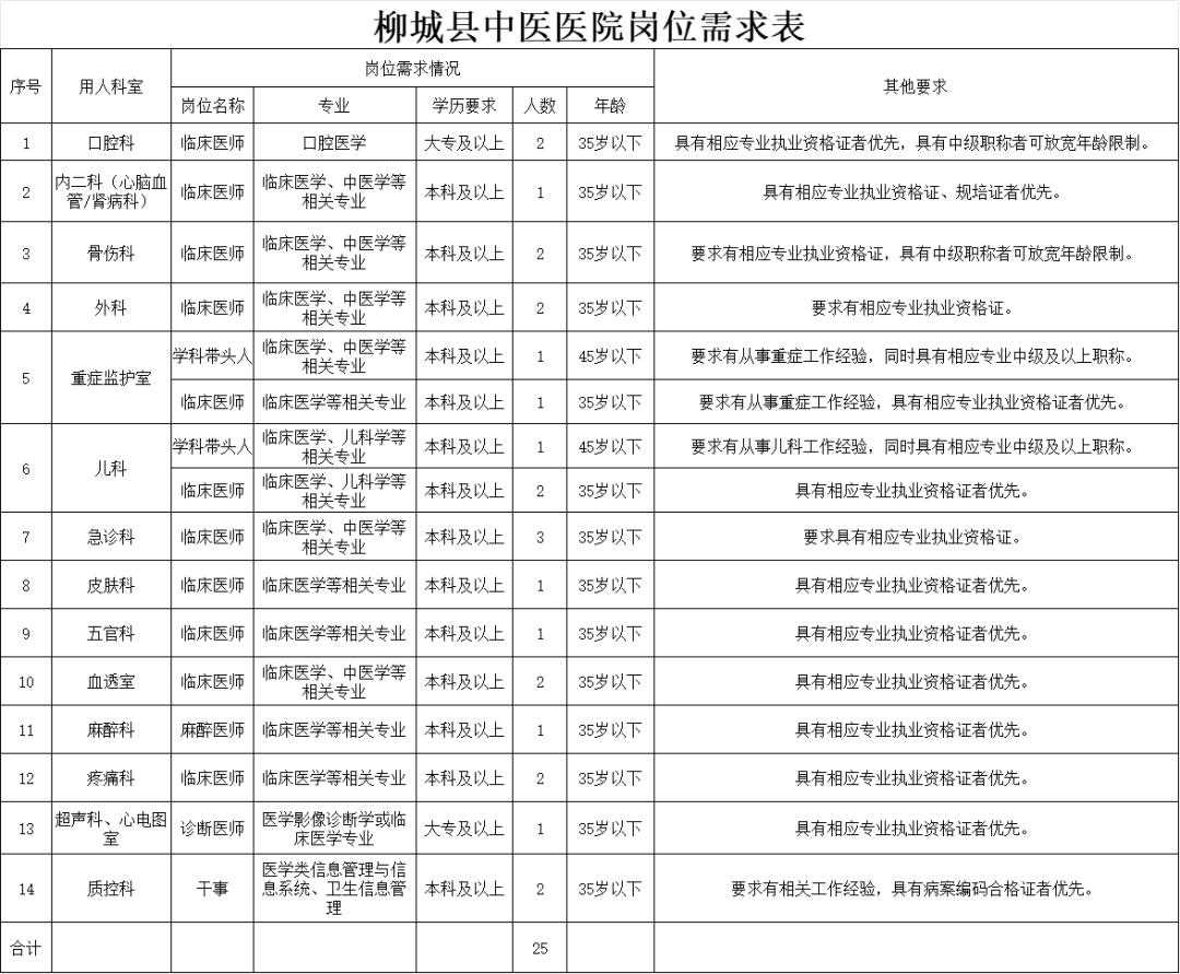 原文標題:2025年柳城縣中醫醫院多個(gè)崗位正在招聘