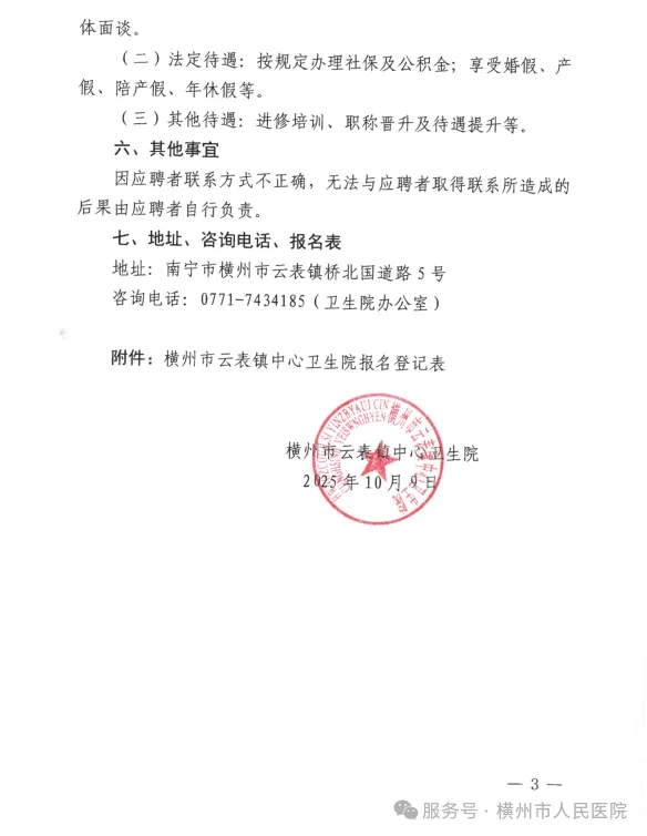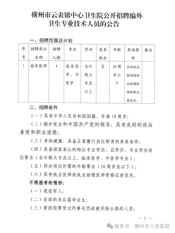 2025年橫州市云表鎮中心衛生院公開(kāi)招聘編外衛生專(zhuān)業(yè)技術(shù)人員的公告