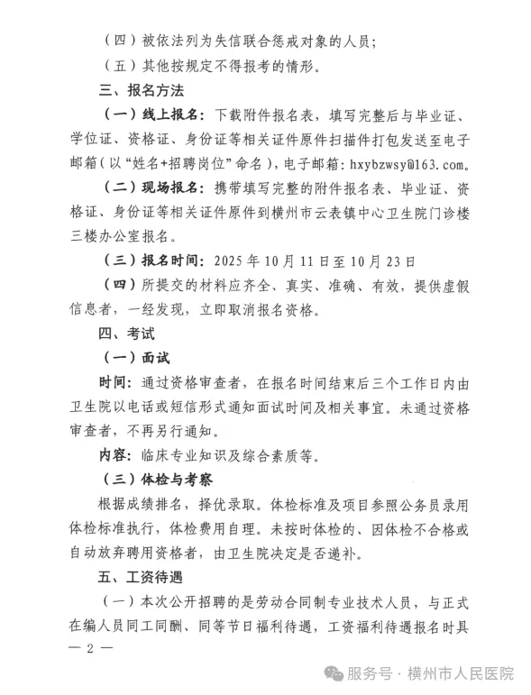 原文標題:2025年橫州市云表鎮中心衛生院公開(kāi)招聘編外衛生專(zhuān)業(yè)技術(shù)人員的公告