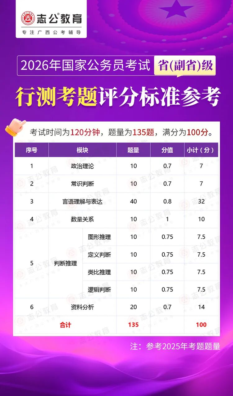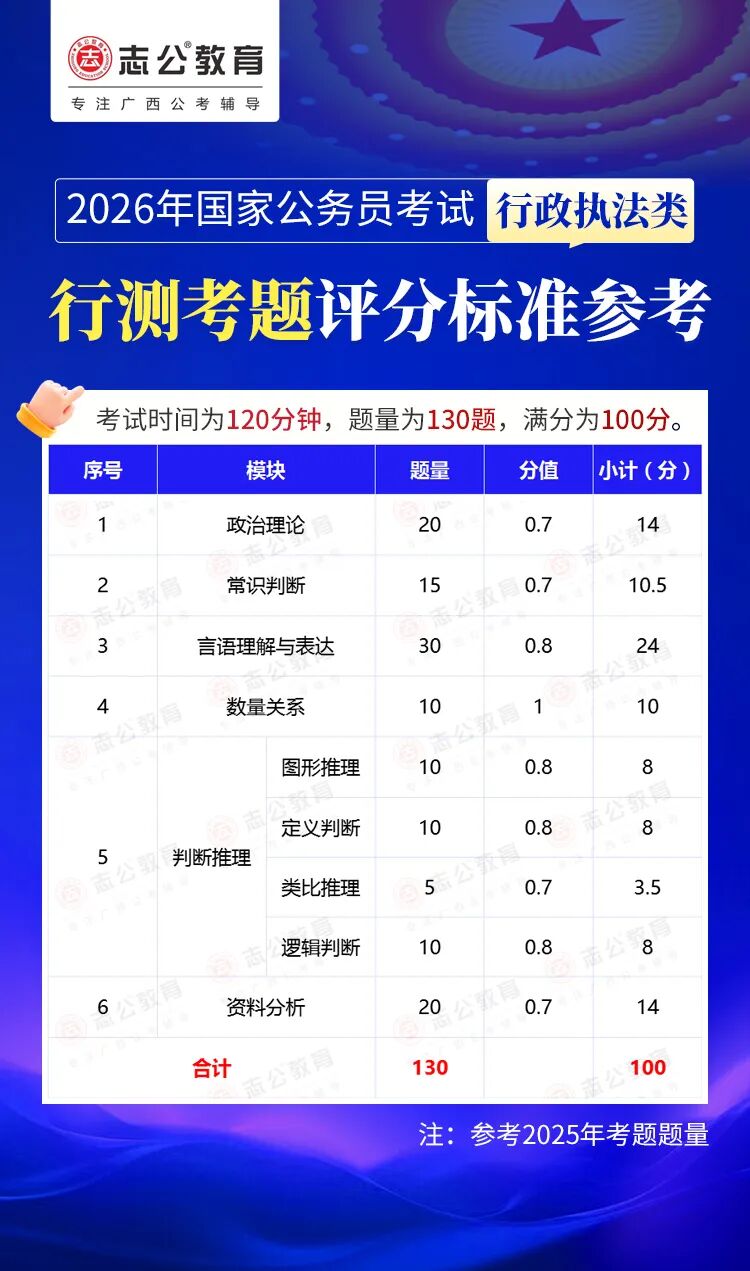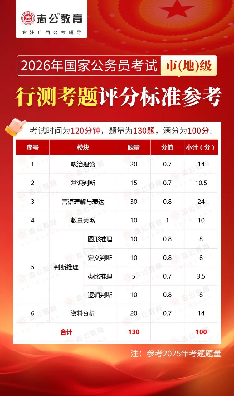 無(wú)論報名人數是否會(huì )增加,提升自身實(shí)力才是應對2026年國考的關(guān)鍵。行測作為國考公共科目筆試的核心模塊,不僅分值占比高(通常為 100 分),更是考生之間拉開(kāi)分差的關(guān)鍵戰場(chǎng)。它并非單純考查知識儲備,而是通過(guò)言語(yǔ)理解、判斷推理、數量關(guān)系、資料分析、常識判斷、政治理論六大板塊,綜合評估考生的信息處理速度、邏輯思維能力、應急決策水平等綜合素質(zhì)。