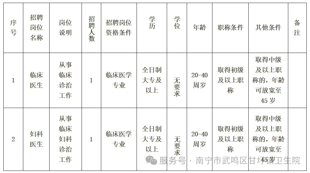 2025年南寧市武鳴區甘圩鎮衛生院公開(kāi)招聘編外工作人員2人