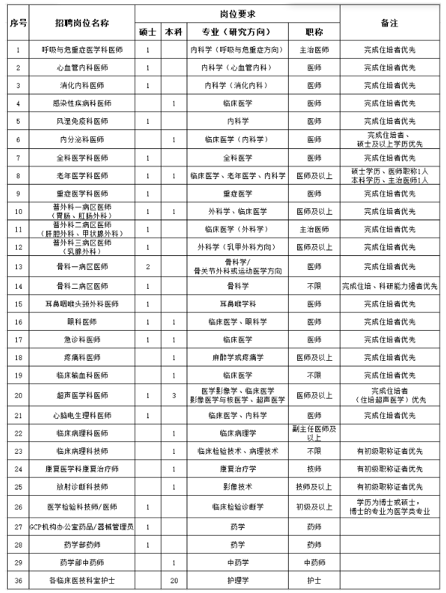 (二)臨床、醫技、護理等崗位人才