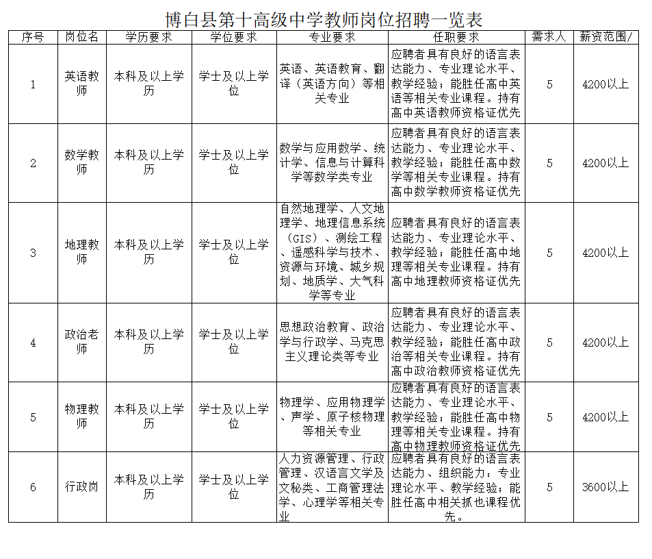 原文標題:急聘!急聘英才 共創(chuàng )未來(lái)|博白縣第十高級中學(xué)2025年教師招聘啟事