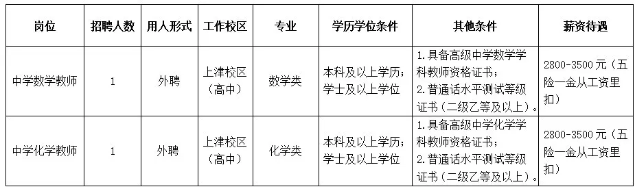 根據學(xué)校工作需要,南寧市第十中學(xué)上津校區(高中部)面向社會(huì )招聘教職工,具體崗位如下: