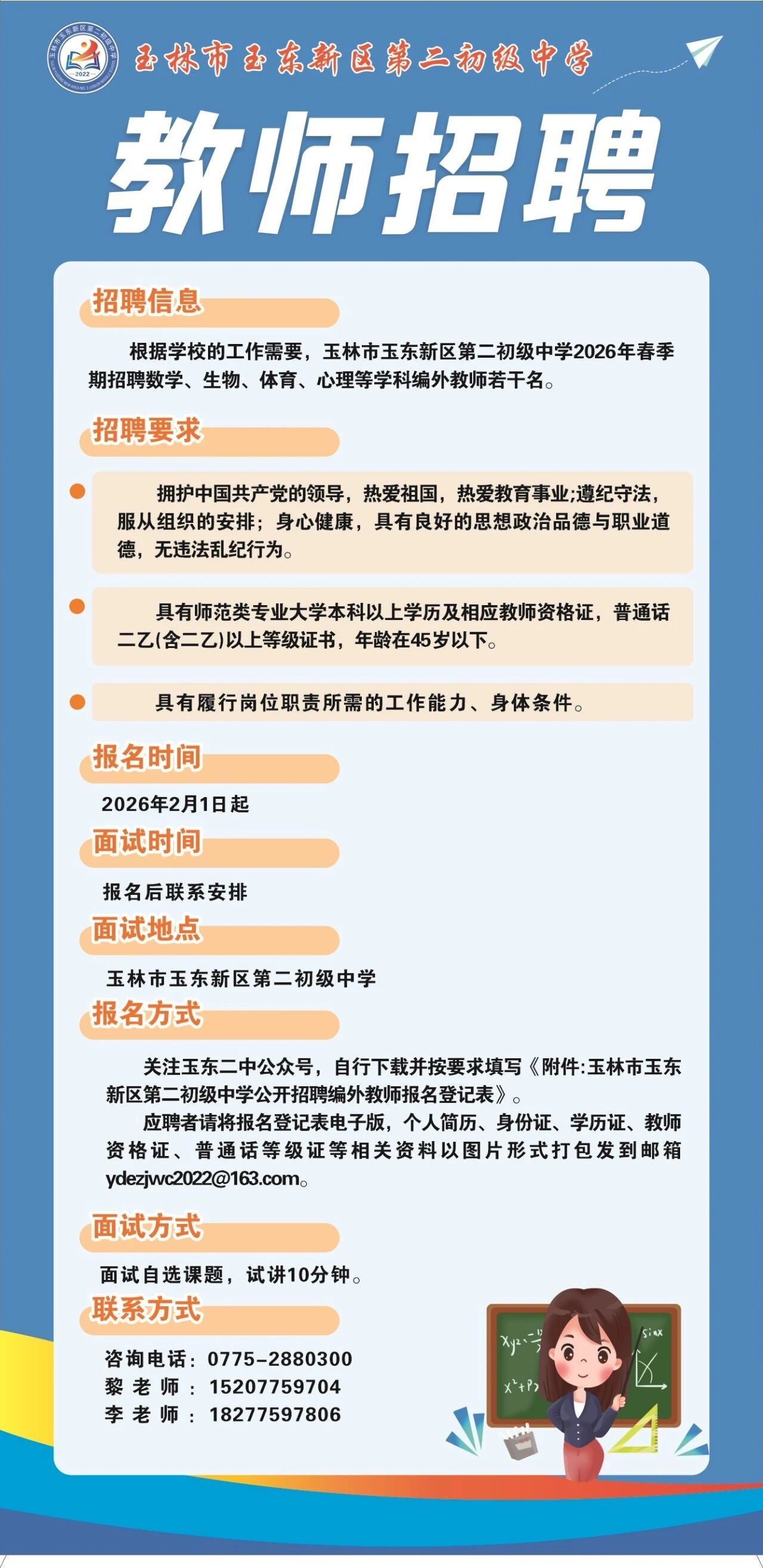 2026年玉東二中·教師招聘數(shù)學、生物、體育、心理等學科編外教師