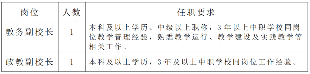 (1)中級及以上職稱,具有教研組組長等管理經(jīng)歷,具備專業(yè)建設(shè)組織領(lǐng)導(dǎo)與管理能力,碩士學(xué)歷的優(yōu)先;
