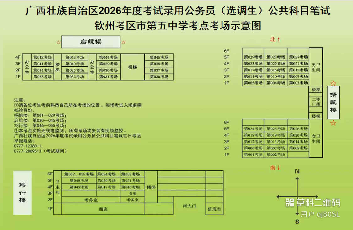 欽州考區(qū)共設(shè)三個(gè)考點(diǎn),分別為北部灣大學(xué)考點(diǎn)、北部灣職業(yè)技術(shù)學(xué)校考點(diǎn)、欽州市第五中學(xué)考點(diǎn)。(考點(diǎn)地址和具體考場安排請掃附后的二維碼查看)