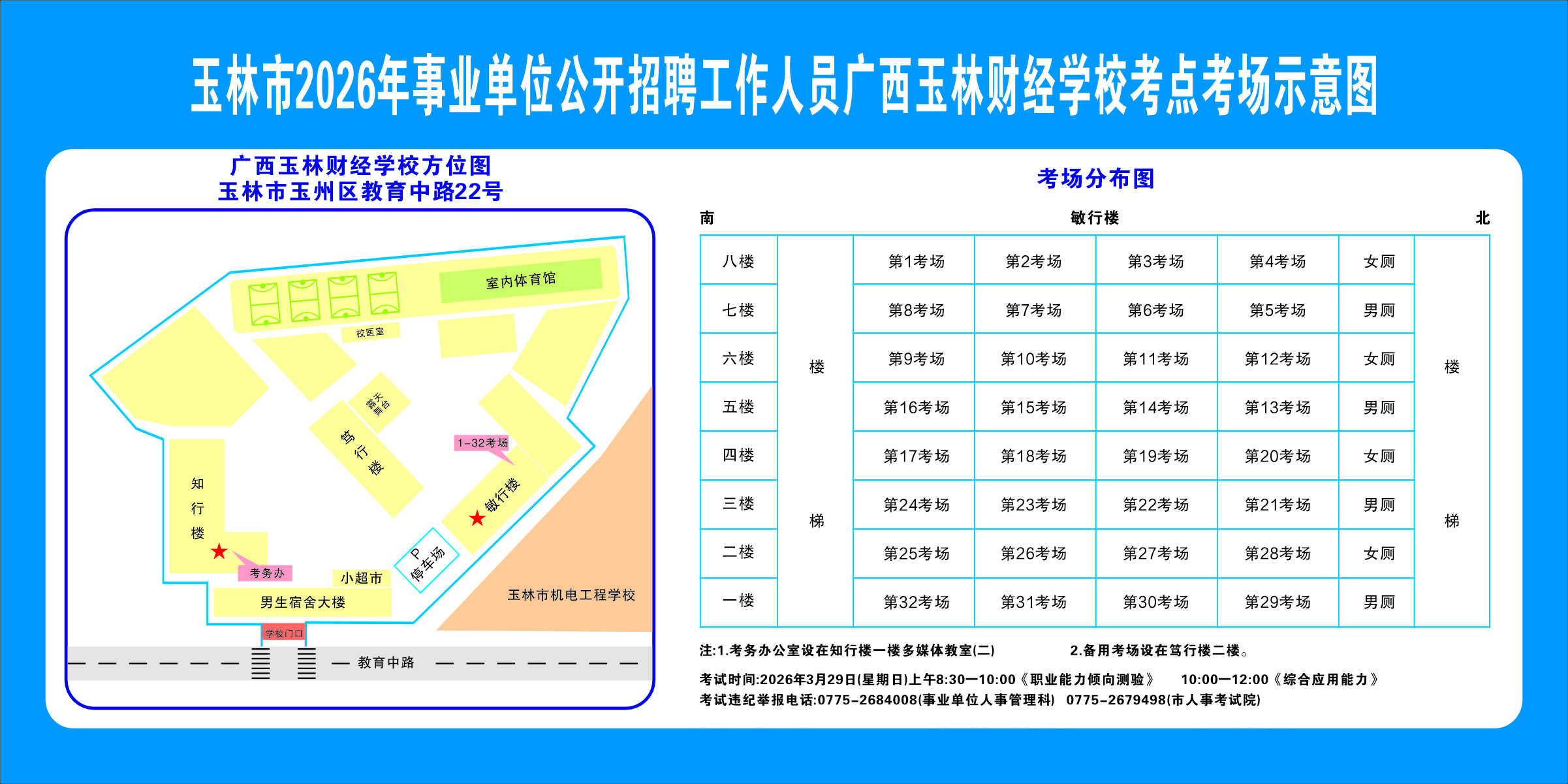 請(qǐng)考生注意查看“考點(diǎn)考場(chǎng)示意圖”,提前熟悉考點(diǎn)地址、交通路線和考場(chǎng)分布情況。除考試當(dāng)天考生可以進(jìn)入考點(diǎn)外,考生不得提前進(jìn)入考點(diǎn)查看考場(chǎng)(學(xué)校將在大門處擺放考點(diǎn)考場(chǎng)示意圖),17個(gè)考點(diǎn)的考場(chǎng)布置情況如下: